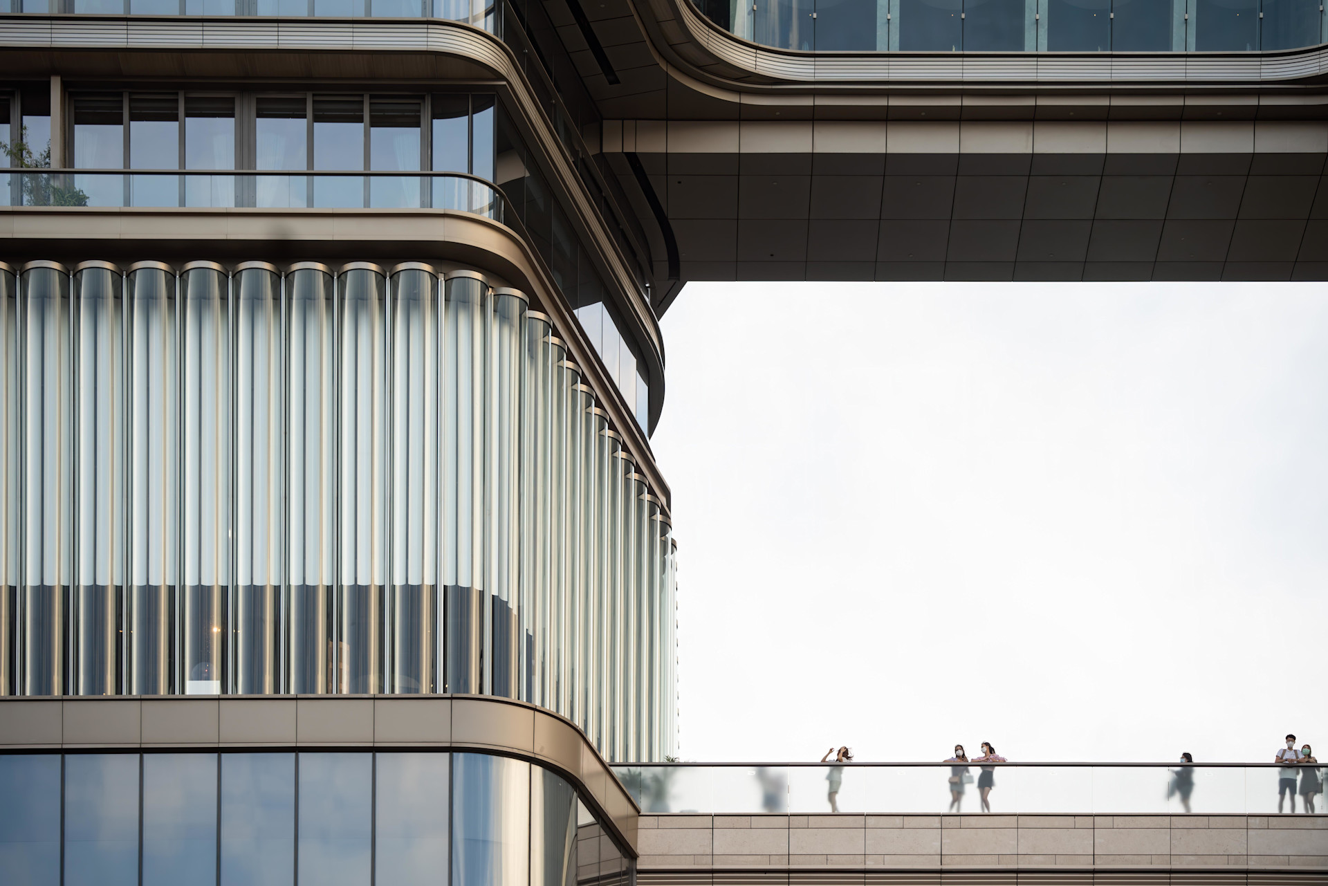The architecture of the museum, designed at the same time construction on the Victoria Dockside began, is driven by the challenges of its unique setting: It rests atop a K11 Art Mall and below a dozen floors of luxury waterfront residences. The museum combines the top two floors of the podium, originally designed for retail and further food and beverage, with a generous rooftop sculpture terrace that boasts the magnificent skyline of Hong Kong as its backdrop.